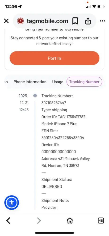 I applied for life line through tag mobile my phone came really fast but it won't charge so I had to order a replacement phone I paid 83.33 tag mobile said my replacement was shipped on December 17 2025 FedEx says they haven't received it. I can't get ahold of anyone at tag mobile so here I am without a phone. Today is 12-23-2025 and now on tags website it says it was shipped today but FedEx still hasn't received it l.