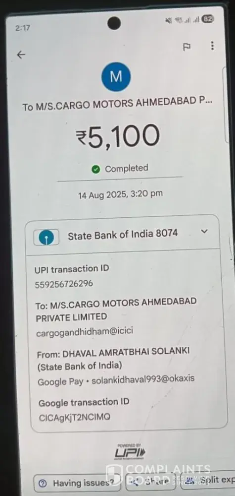 I booked a Tata Nexon car on 14th August 2025 from Cargo Motors, Ahmedabad.
