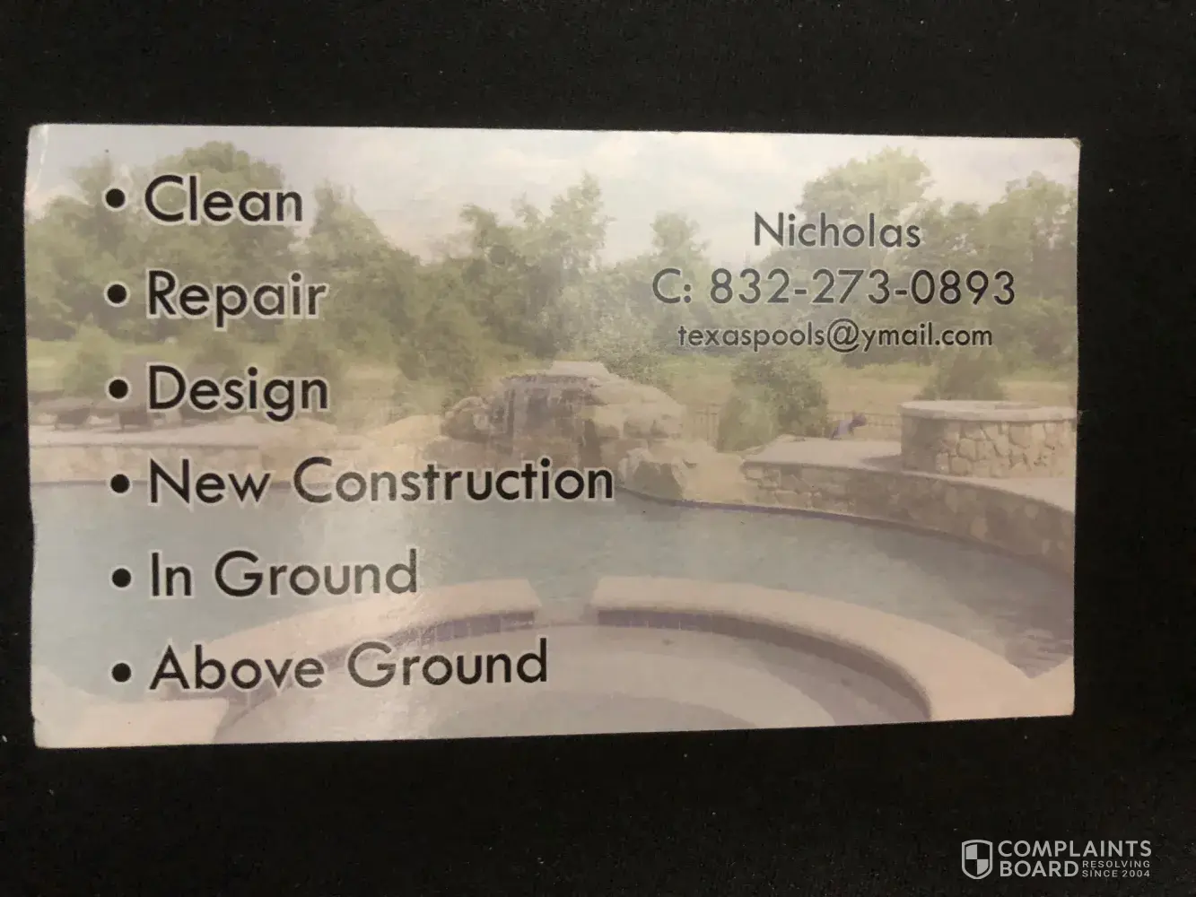 I feel for each of you that were stole from. I’m glad I found this site because I’ve been speaking with a guy I found on craigslist named Nicholas (last name unknown) and his brother about getting a price for a pool. His email says his company is Texas Custom Pools [protected]. He said he needs to keep his crew busy and to do so he can make me a great deal on a pool. I think I’ll pass to pass. I hope the phone number helps.