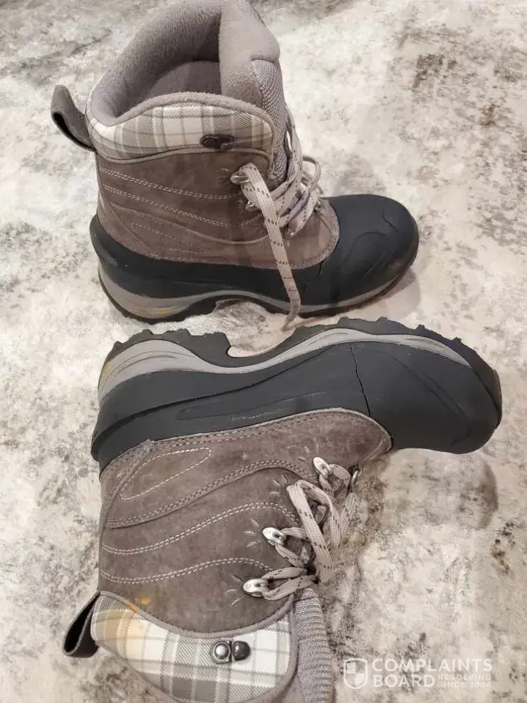 the bottom rubber sole fell off on one of the boots which is very dangerous when doing outdoor activities. I do have numerous north face products including the jackets which are very worm and never had a issue with any product until now. if at all possible would like a new pair of boots as i am sure it was just a defect with the adhesive process. also i sent pictures to show the boots were not abused in any way and still look new and that the sole came off in one piece and not in pieces. thank you for dealin with my complaint and i hope we can come to a happy solution.have a great day and good new year!