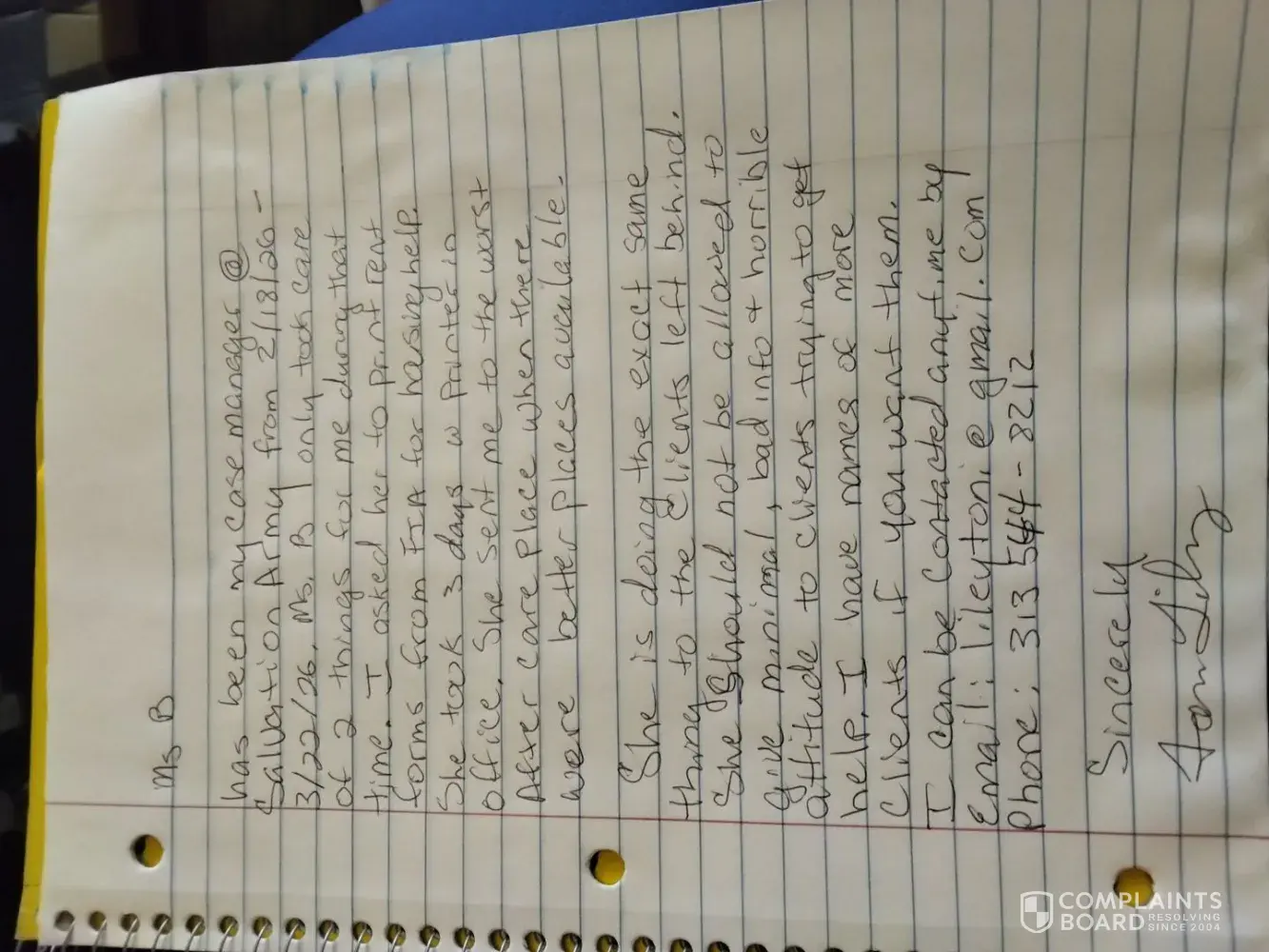 I file a complaint about two weeks ago I guess that I am not going to hear anything about my complaint FREIDA PERRY [protected]@gmail.com IT was about me and asking for them to help me on my house payment. then going to the salvation army at Jackson Tn.they told me on the phone they could help me but I got to the salvation army in Jackson Tn they told me...