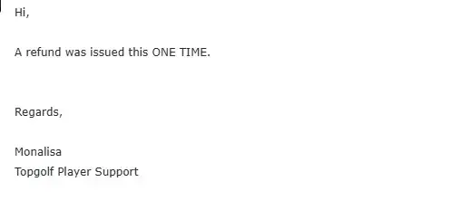 Topgolf has left an official reply on this complaint.