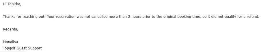 Topgolf Reservation and Refund Experience