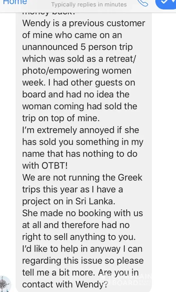 I met Wendy Via a Facebook page called Girls Love Travel. There are over 600, 000 women in that group, and it's run by a woman named Haley Woods. I have reached out to Haley to let her know my story with Wendy, as she's finding people to connect with and scam in that group. Hopefully she removes her from the group. Wendy seems put together, and honest, but...