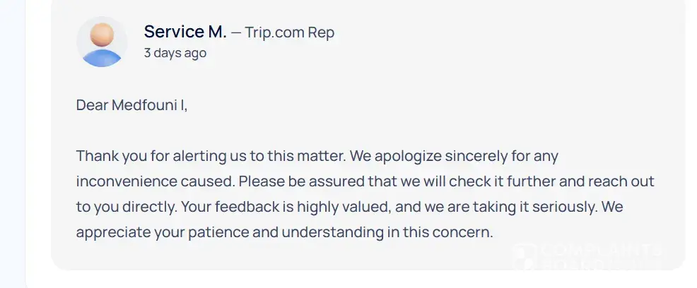 - While Trip.com has a high level of trust, our investigation has revealed that the company's complaint resolution process is inadequate and ineffective. As a result, only 5% of 56 complaints are resolved. The support team may have poor customer service skills, lack of training, or not be well-equipped to handle customer complaints.