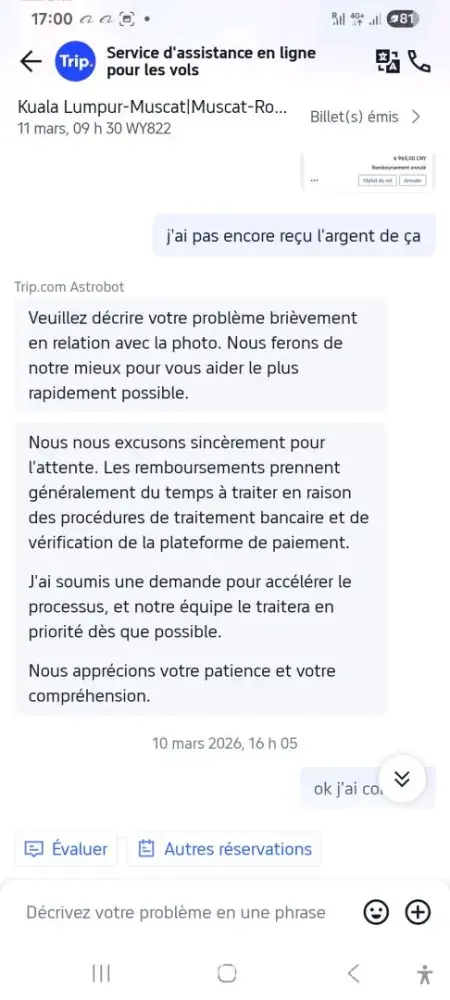 Desired outcome: Refund of the Ticket amount, please.
