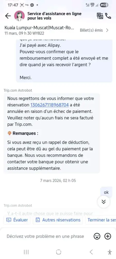 I am contacting you regarding my Kuala Lumpur – Muscat ticket. The flight was cancelled by your company, and I have all the proof of this cancellation.