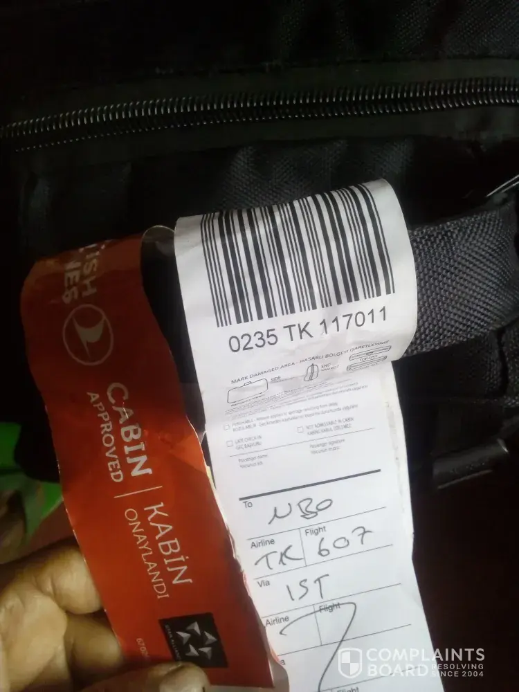 Turkish Airlines I am complaining about my luggage not arriving my final destination