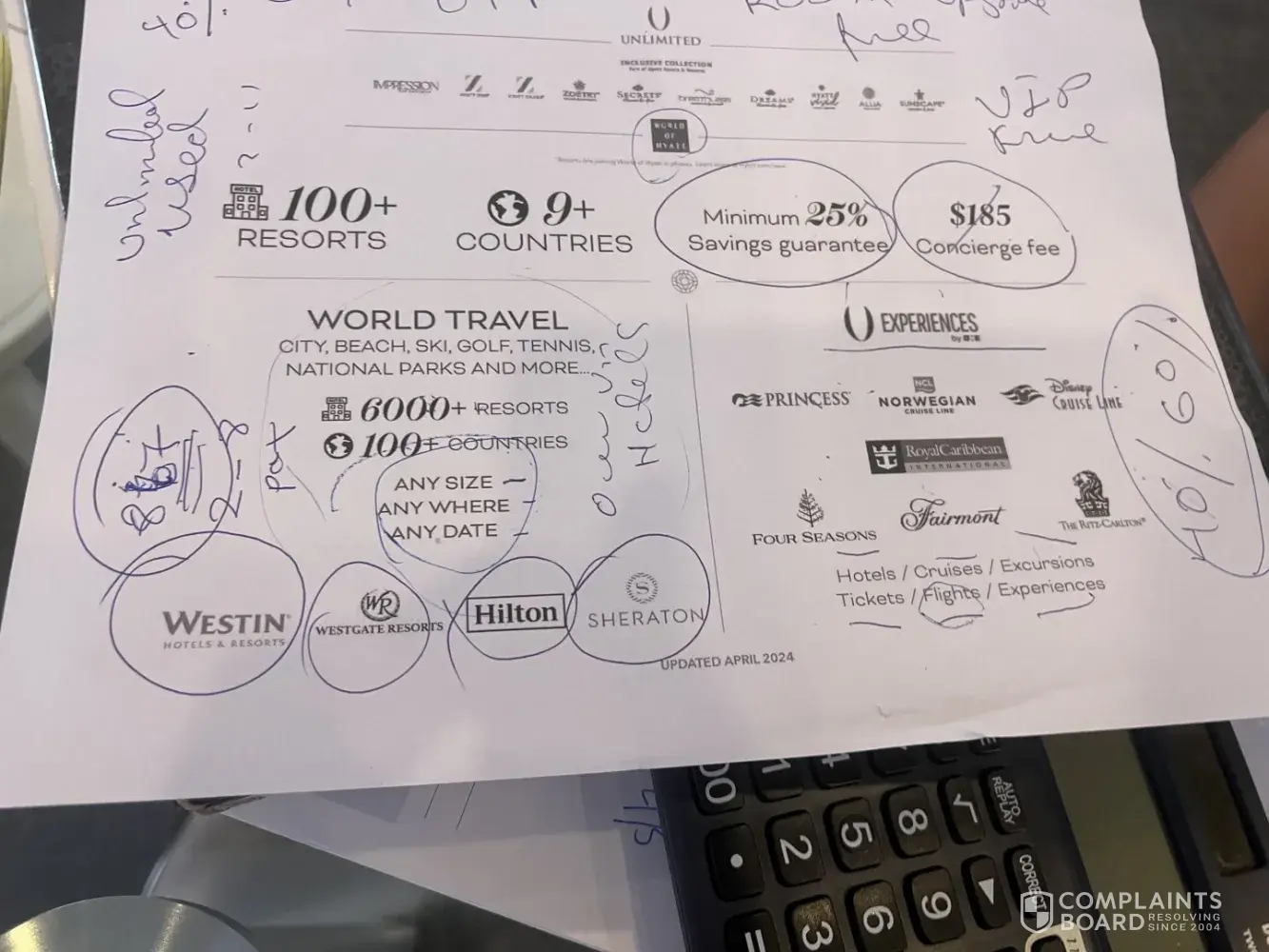 We were very skeptical about high pressure sales pitches, prefaced with breakfast champagne. However, after repeated efforts to obtain representations as to what was being offered, and the guarantee of the Hyatt brand, we agreed to a plan that included "unlimited booking of all Hyatt Properties and all inclusive for 5 years." Since we intended to use the...