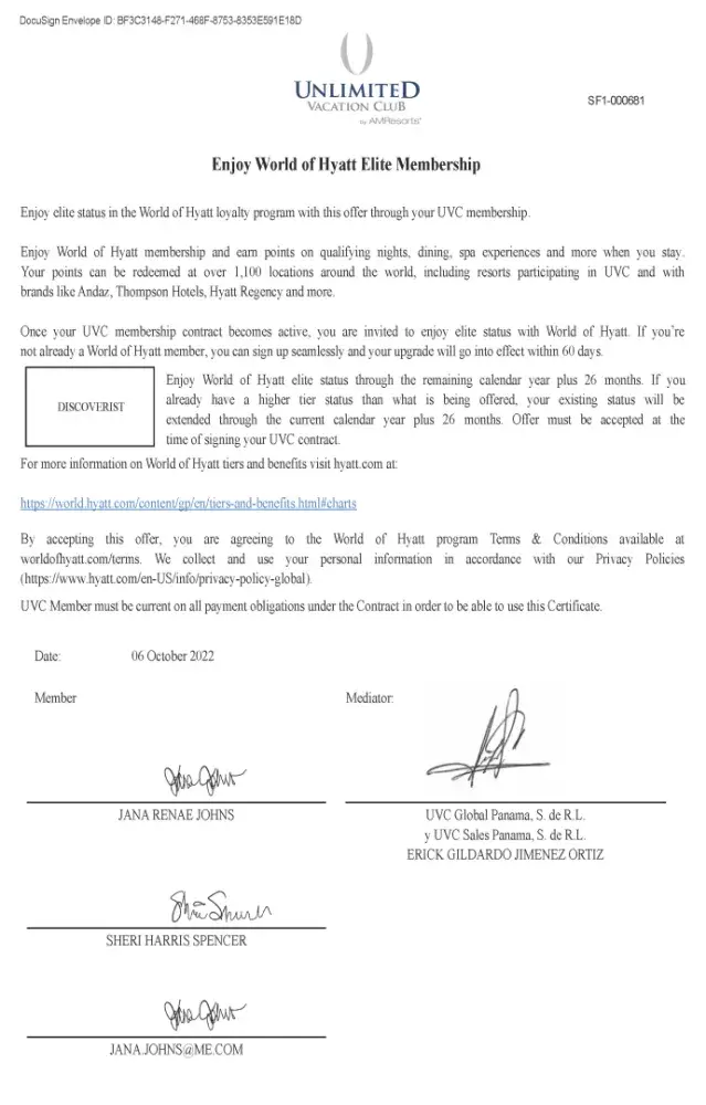 My husband & I were vacationing at Dreams Royal Beach in Punta Cana when we attended the sales pitch for the Hyatt U.V.C. We were told that our 28 free days would be upgraded to no black out days. This was a lie. The only reason we signed up was because we thought that for the money it would cost overall, the free days almost paid for the entire membership...