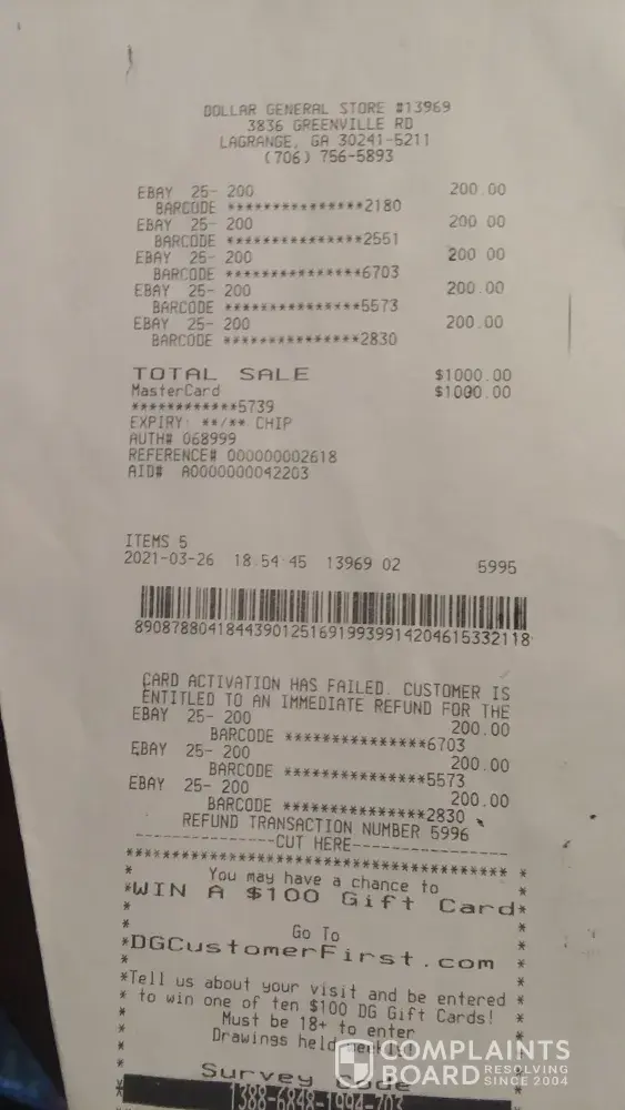 View all 3854 complaintsDollar General - Refund my $1,000