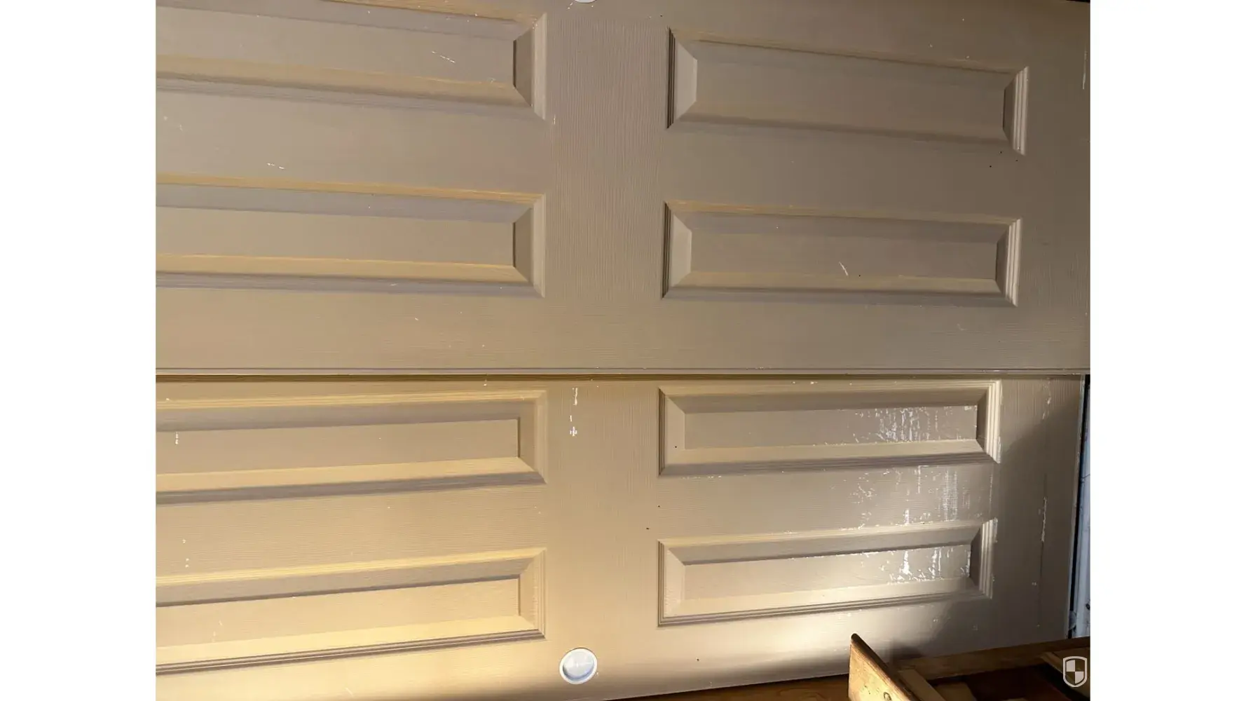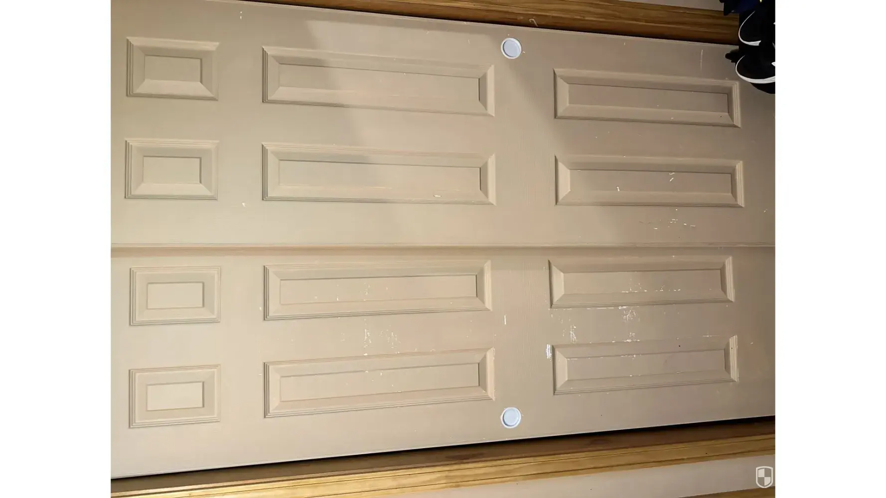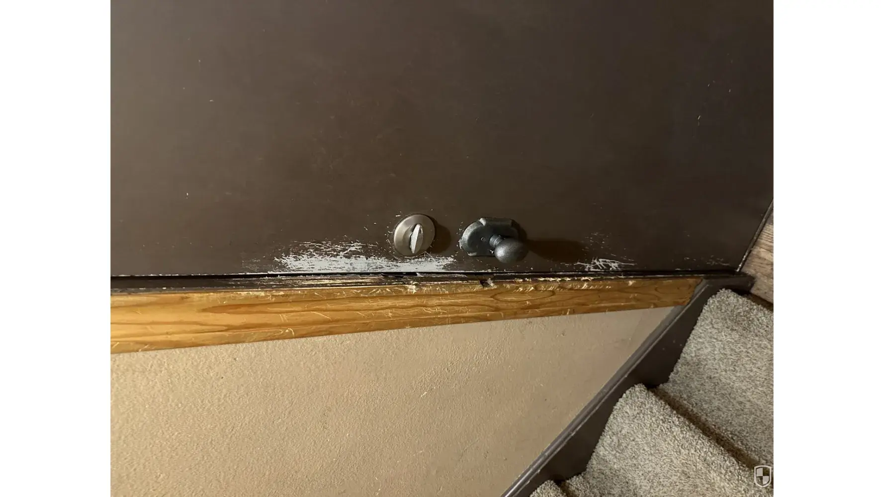 The back of the front door and garage door leading into the garage has huge scratches all over them.