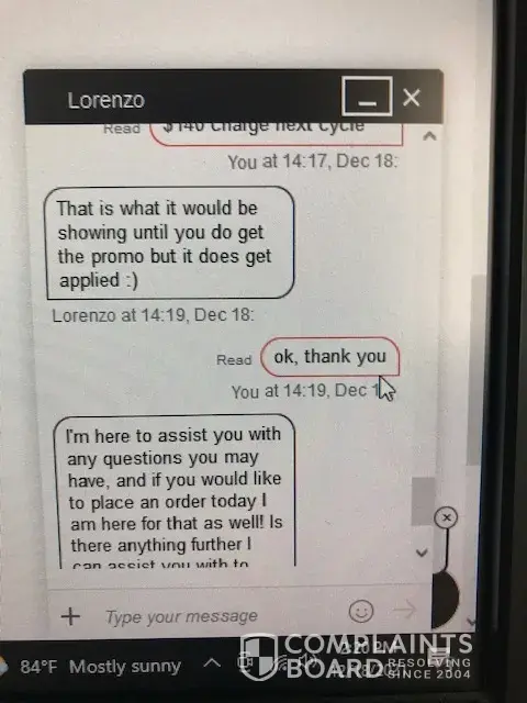Desired outcome: I would like them to stand behind their online service/sales team and honor the promo they promised would be credited to my account!