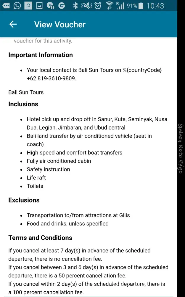 I booked a transfer from gili trawangan to seminyak and was not sent any information. In the information box on the booking I listep my hotel name and contact number. I also provided my number and my email address. As usual I normally receive a confirmation email to say the booking details. For this booking I received no information. I then used my hotel phone to contact the number provided in the booking screen. This number never picked up and that was the first worrying stage. I then arrived arrived the beach in the designated location to get the transfer and I was not able to locate my boat. I went to every boat and showed them my booking but none seemed to know which boat I was after. I ended up having to purchase a new ticket and I had a flight to catch in a few hours. The troubles caused me to miss my flight as the next available boat was not taking a direct route. After we got to shore we then presented with a 3 hour drive to the airport. This was double the original time suggested from my original booking.