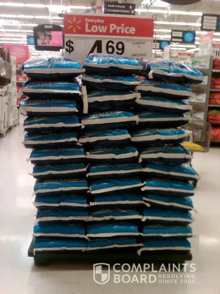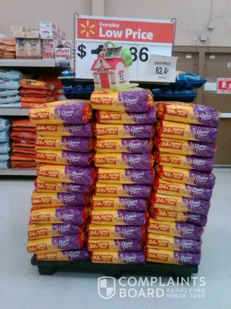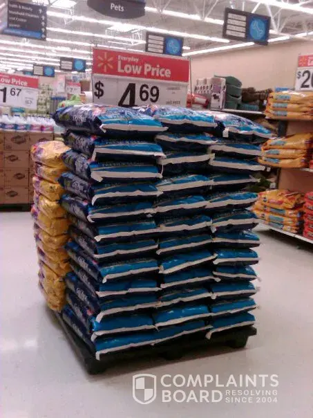 On a thursday I reported with pics to walmart corporate that stacking 25lb bags of kitty litter 12 bags high was dangerously unstable and 300Lbs falling over could kill a child. I was told the matter would be adressed. Friday 4pm I stopped back in and found a managers meeting at the now fixed pile of kitty litter and spoke with store managers. Later at 10...