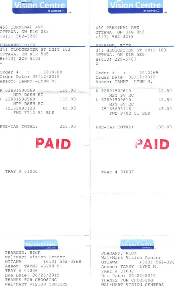 I went to walmart vision center for an exam which of course was out of my pocket I wll tell you why they take cash first! in this complaint! I went here an got the exam then picked out my frames but when I went to get my glasses excited an all... they didn't look the same as what I picked then as I got home I told my fiancee my vision was distorted I couldn't see in short! I called them an they replaced my lens so I then said let me since I came to get the new lens glasses i'll exchanged the frames I had purchased 2 pair of eyeglasses an echanged 1 when I was called to pick them up again I noticed it didn't look like what I originally picked an they still are distorted an my 60 day period is over! 😠they do it that way to take their customers money without a paper trail an they can refuse to help you without more money out your pocket is that even legal?