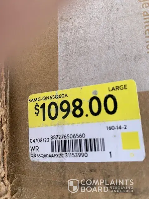 Desired outcome: I need the TV I purchased for $1098 plus tax.