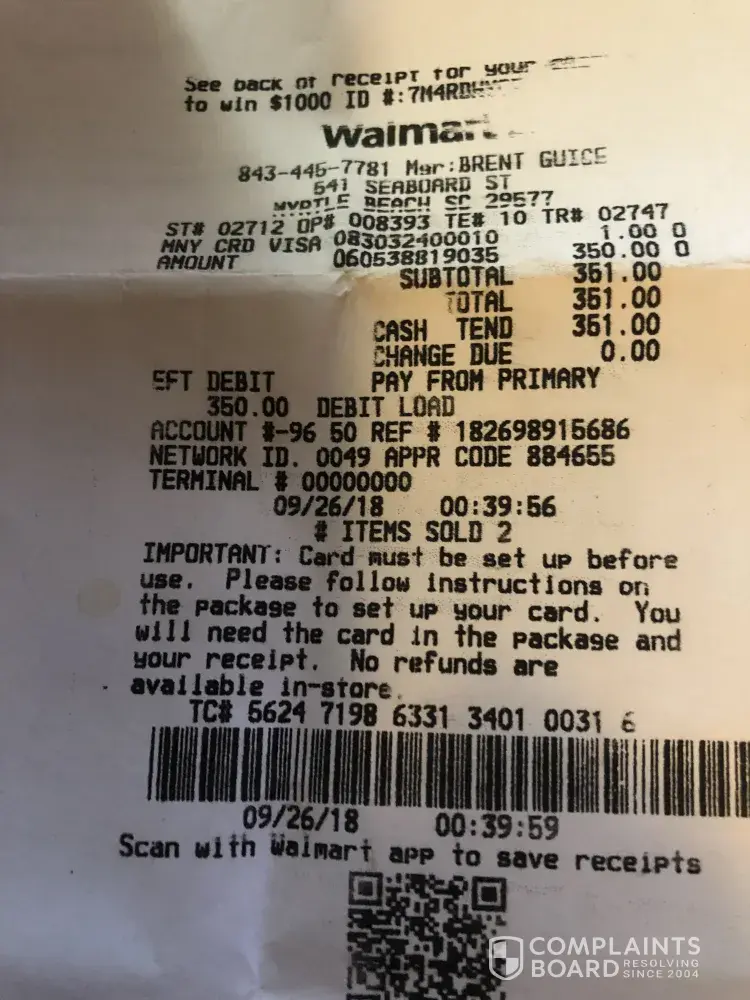 Read full complaintwalmart money card