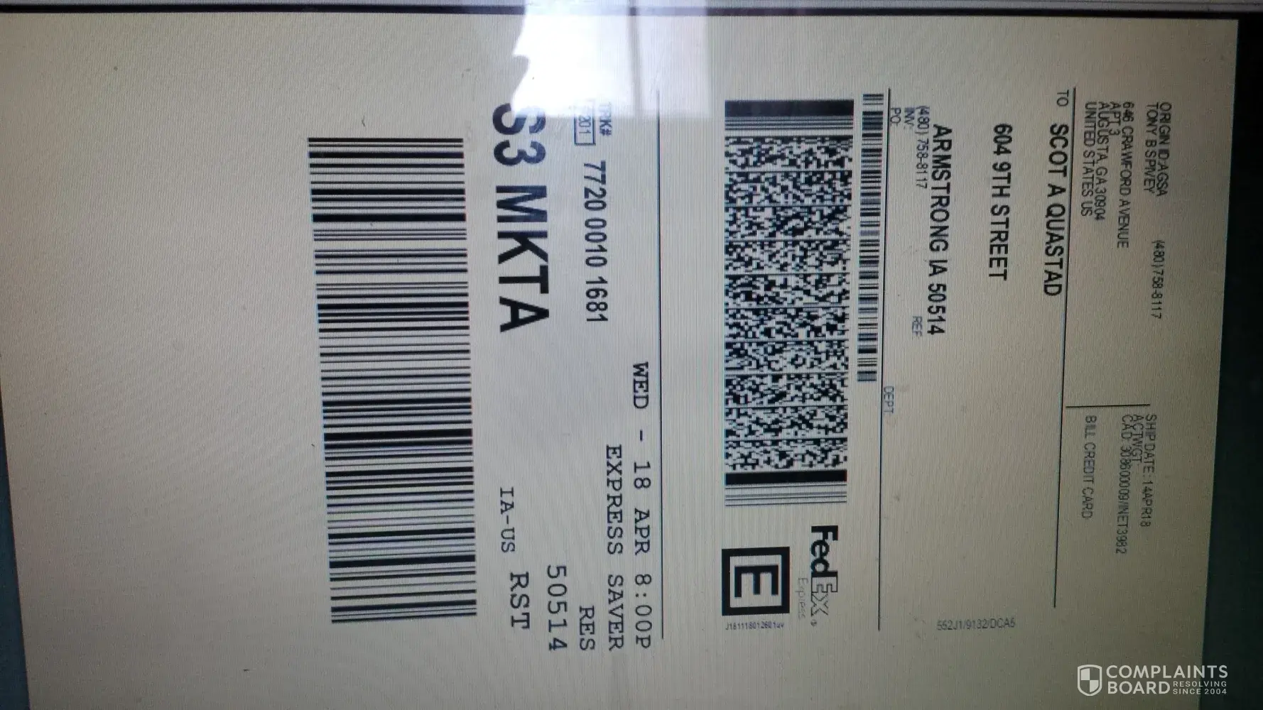 Verified customer This complaint was posted by a verified customer. Learn more