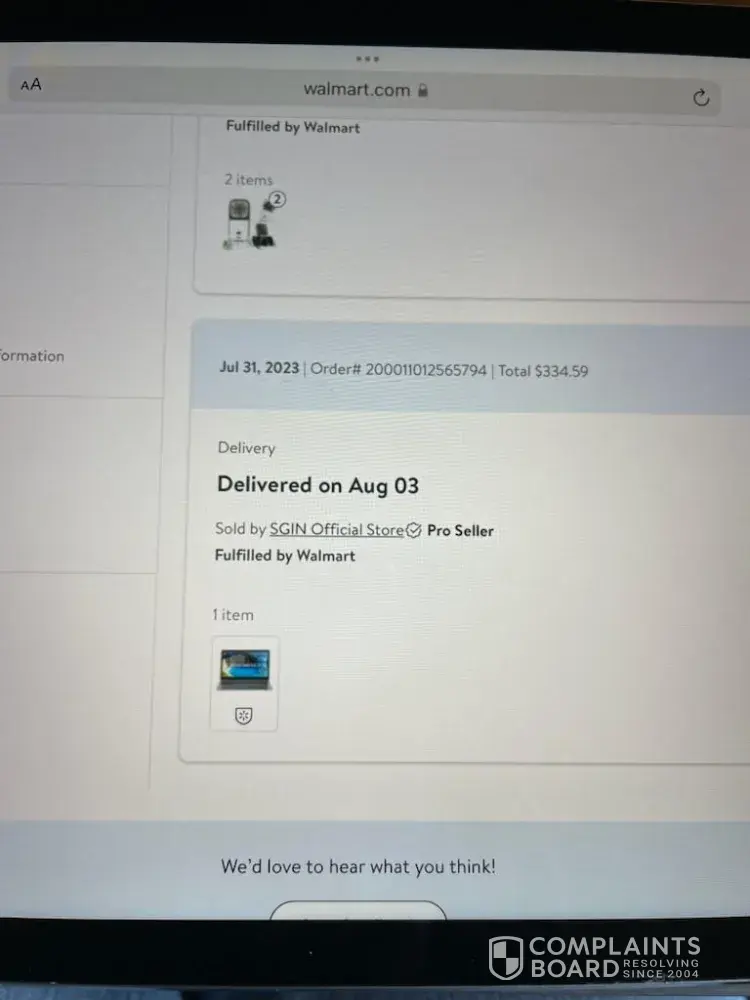 I purchased a SGIN 15’ Laptop computer from Walmart on August 3, 2023. I spent $275.59 plus 59.00 for protection plan insurance, the seller was SGIN OFFICIAL STORE. At the time I assumed that I was purchasing from Walmart. It had a 90 day return which again I thought it was Walmart return policy. I turned the computer on and it disconnected from the...