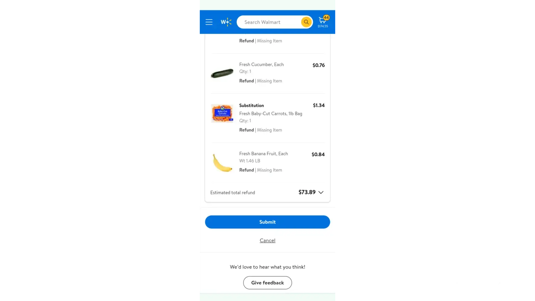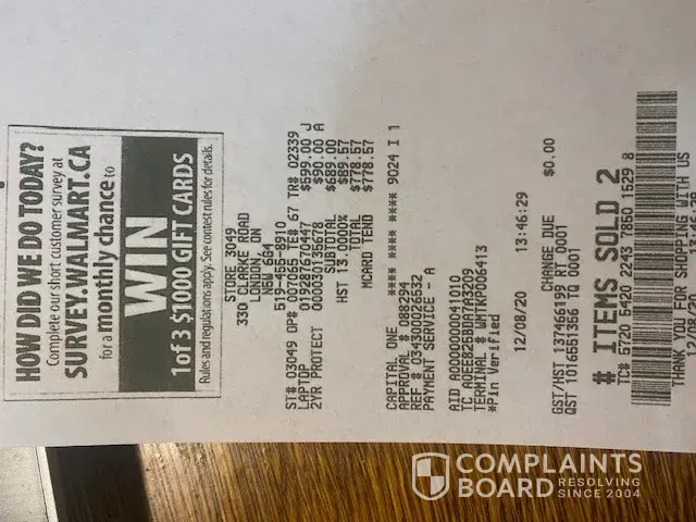 Walmart.ca: "we thank you for taking the time to share your concerns to help us improve"