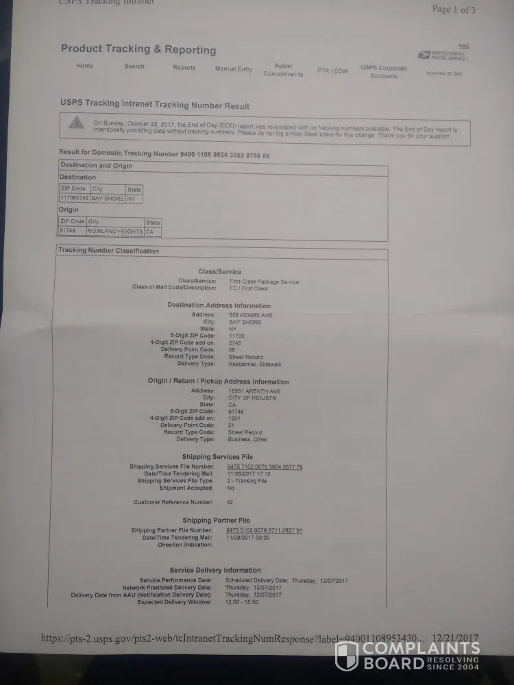 I am shocked to see that walmart a big name company has associates with cheater companies to sell on line products. My order no [protected] (body armor, biker jackets) ordered on 24 dec 2017 which shoUld be delivered on 2 jan 2018 USPS NO is # 9274890204310802532669.