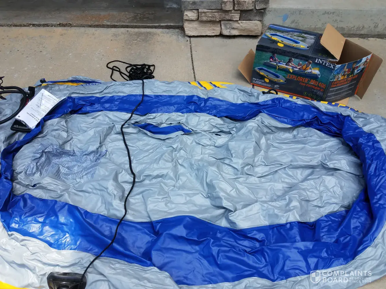I bought the boat set for around $37 with 25% discount on June 15, 2017. The store was closing so the sales were final as they said. So I didn't keep the receipt but I made a big mistake. Today (July 6) about three weeks after I bought the boat set, I opened it with my 8 year old daughter. We were both shocked to find the item was a used one, it's dirty with mud, animal hair and 4 CUT HOLES! The oars were missing, too. This is the most ridiculous shopping experience I've ever encounter in my life (I am 47 years old), and it's happening in the U.S.A! Now the store is permanently closed, I therefore took it to near by 2 walmart stores, but they wouldn't return or exchange because they don't carry that item. I contacted the coporation's customer service, she adviced me to try more stores to get exchange or return. To me this is extremely upseting that Wal-Mart resell an returned item and didn't even check the content. The item is actually sealed and resold as a NEW ITEM! It's very unbelievable to me.