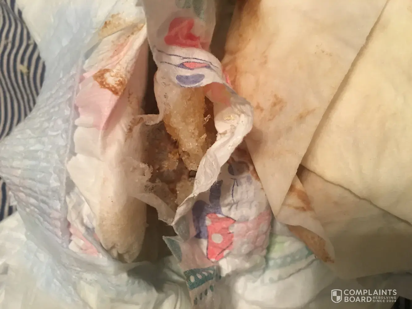 My son woke up in the middle of the night fussing I go to his crib and his diaper fell apart and was everywhere! I had to pick him up and change his diaper and clothes cause the filling was everywhere!and I had just changed him not even 2hours before he started fussing this is not the first or the second time I spend all this money for diapers to fall apart!these pictures are not when it happened but I took these in the morning time.
