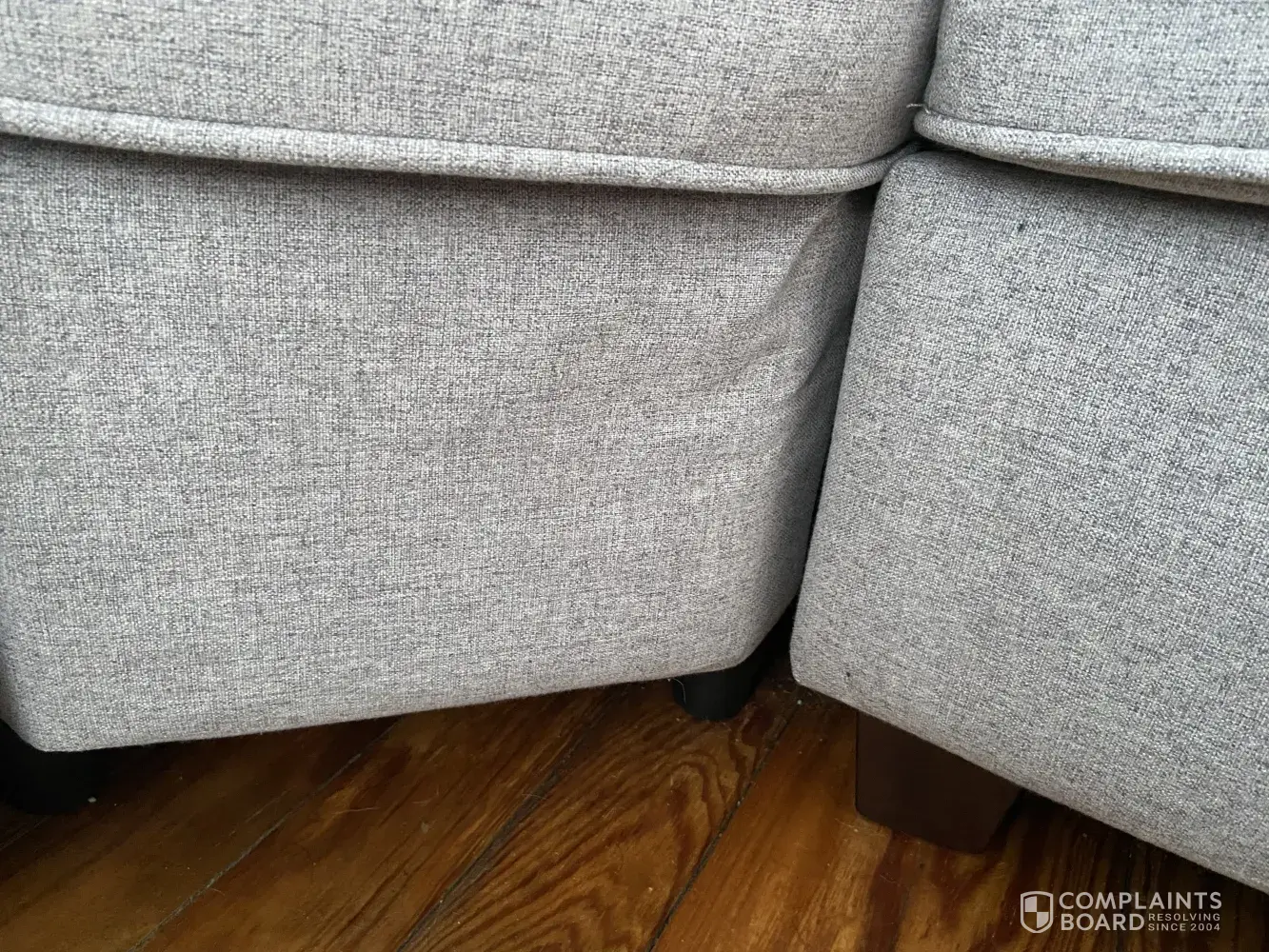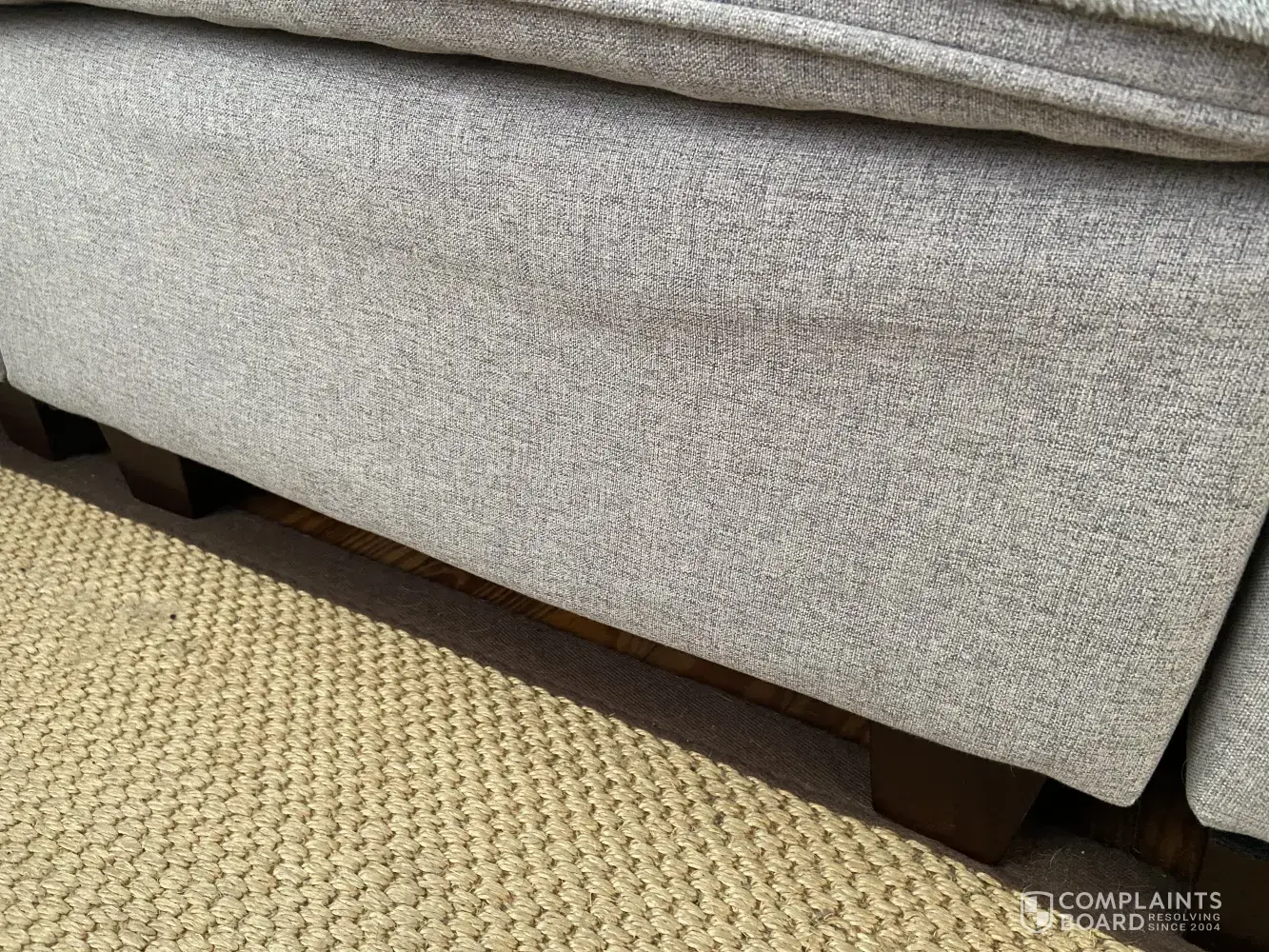 The sectional seat bottoms are having a fabric or structural issue. the material is bubbling. a pouch or loose fabric is appearing under each seat cushion. Two people use this couch and we are of normal weight 150 and 200 lbs. the couch shouldn't be buckling after less than 8 months. It looks terrible and I fear this will increase. Can this couch be replaced? returned or a credit be offered for the defective product.