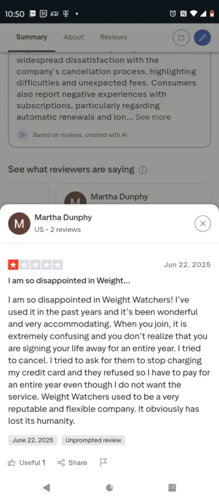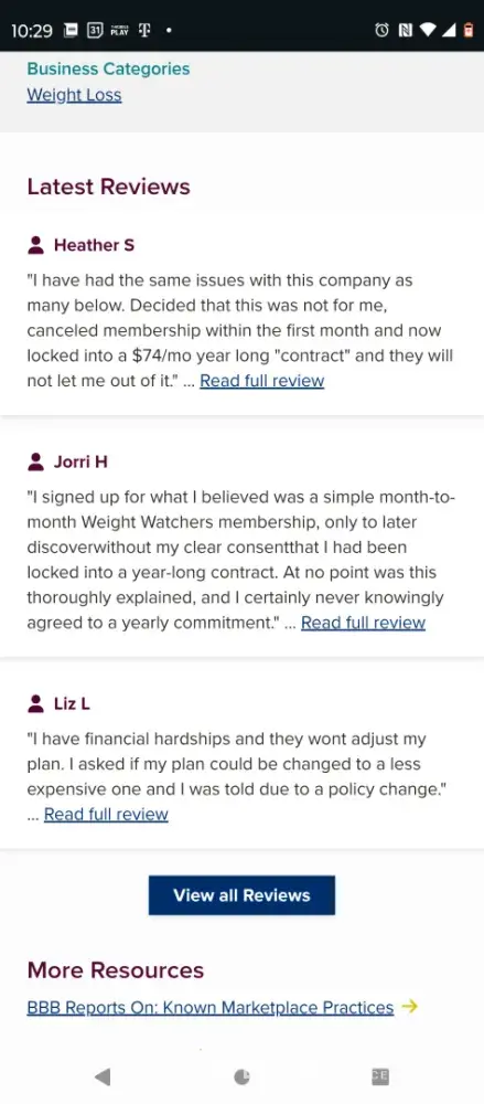 - We conducted a search on social media and found several negative reviews related to Weight Watchers International. These reviews may indicate issues with the company's products, services, or customer support. It is important to thoroughly research the company and its offerings before making any purchases to avoid any potential risks.