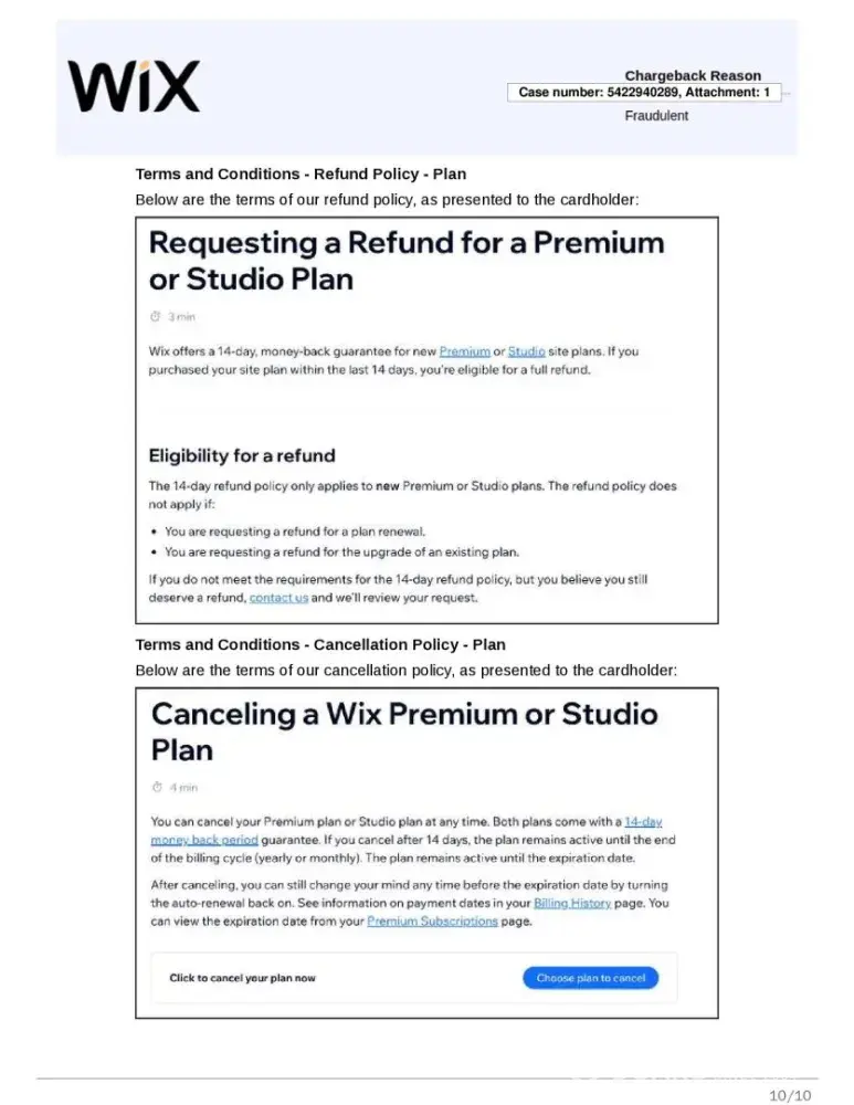 I mean, they're supposed to offer a 14-day money back guarantee, but they didn't honor that at all. So, I had to take matters into my own hands and contact a lawyer in California (where Wix is based). After looking at the site and the billing layout, my lawyer found out that Wix was breaking the law.