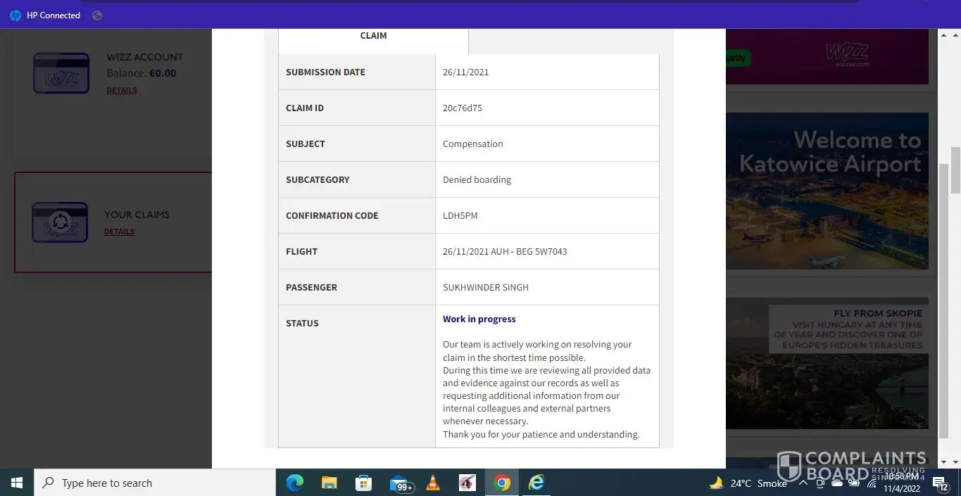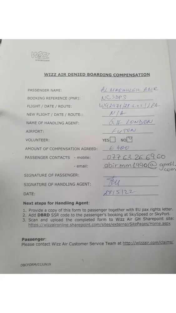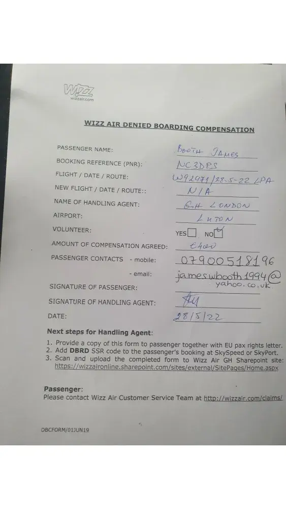Wizz Air Staff did not provide a denied form; they told me that just do it online & raise an online complaint for refund.