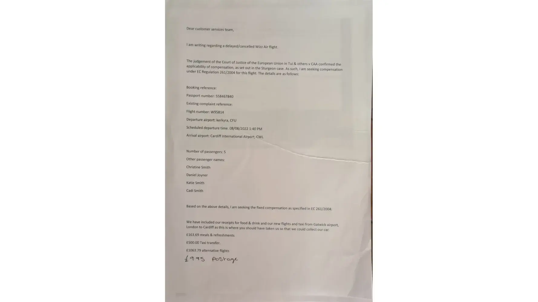 Desired outcome: I want to recover the costs incurred and refund of the flight booked which amounts to £3157.59 plus compensation @£540 per passenger (5) for the stress and inconvenience this caused, we missed work and transport connections.