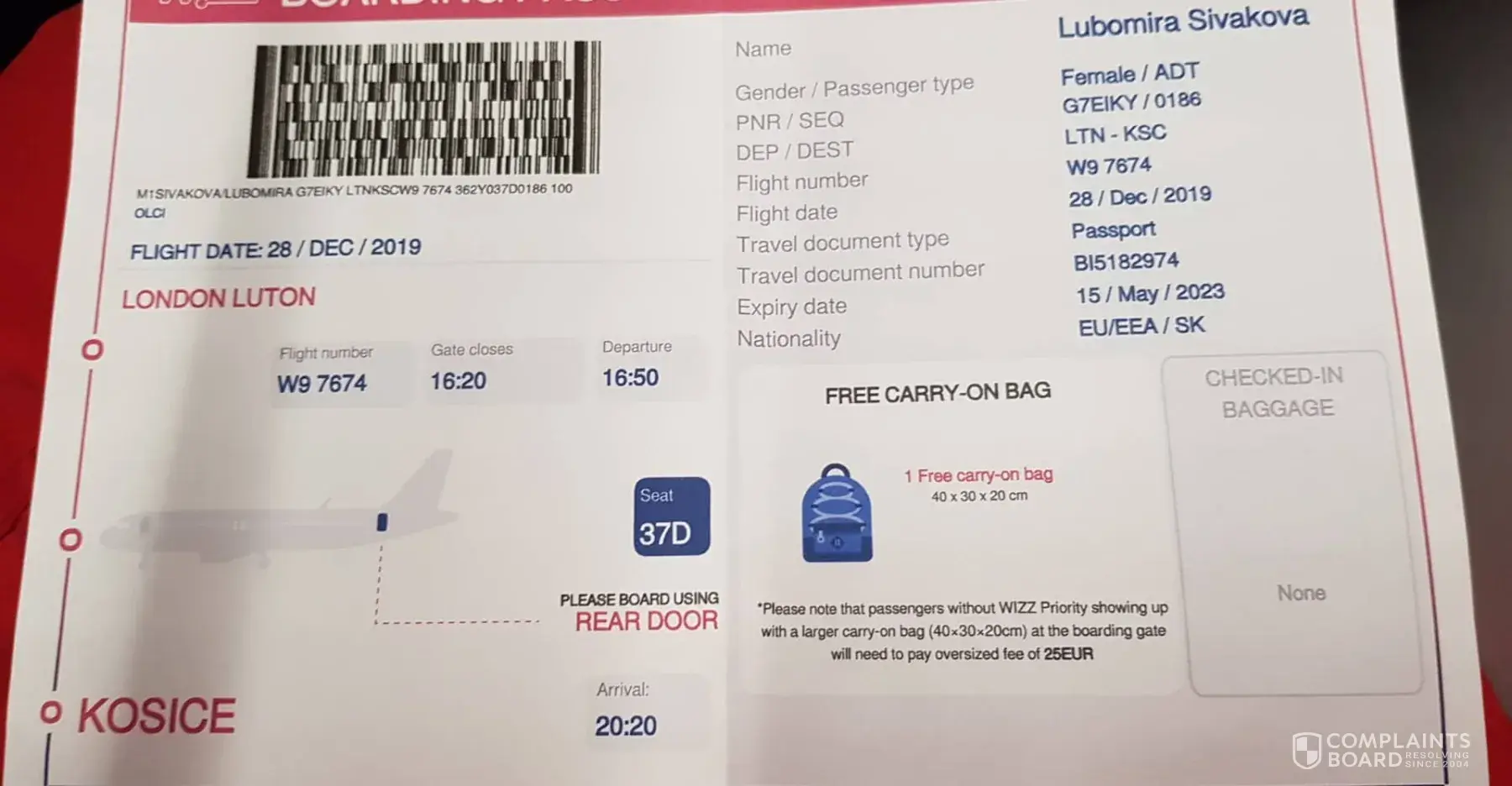 Additionally there was absolutely no representative to speak with at Gatwick airport which again only highlights a situation of bad practice by Wizz Air in how they deal with consumers to rectify situations that are unpleasant and unnecessary prior to the start of a holiday.