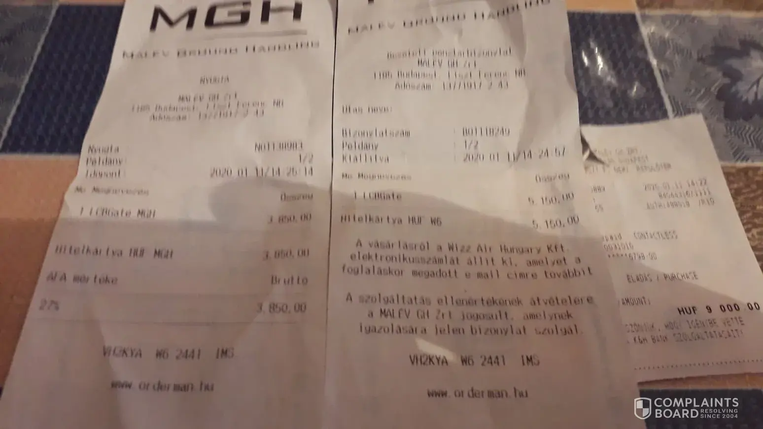 2) Refusal to board the flight Athens if I don't pay 18, 000 HUF (see attached 3 different receipts) or 25 euros immediately for a shopping bag 30X 40 cm.