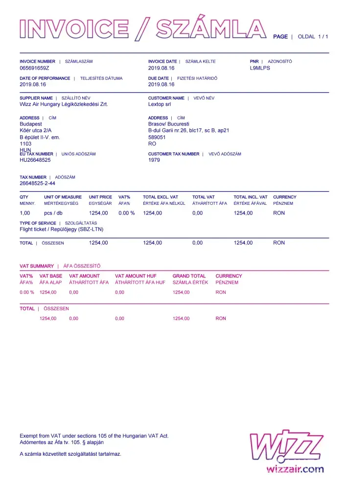 This itinerary is a confirmation of your reservation and part of your electronic ticket. Your booking is now confirmed and you do not need to contact us before flying to re-confirm your travel arrangements. This ticket is issued as a ticket with fixed flight date. According to the tariff rules, all fares, taxes, charges and fees for other services for unused flights are non-refundable except as explicitly provided in the general conditions of carriage. All Wizz flights are economy-class only.