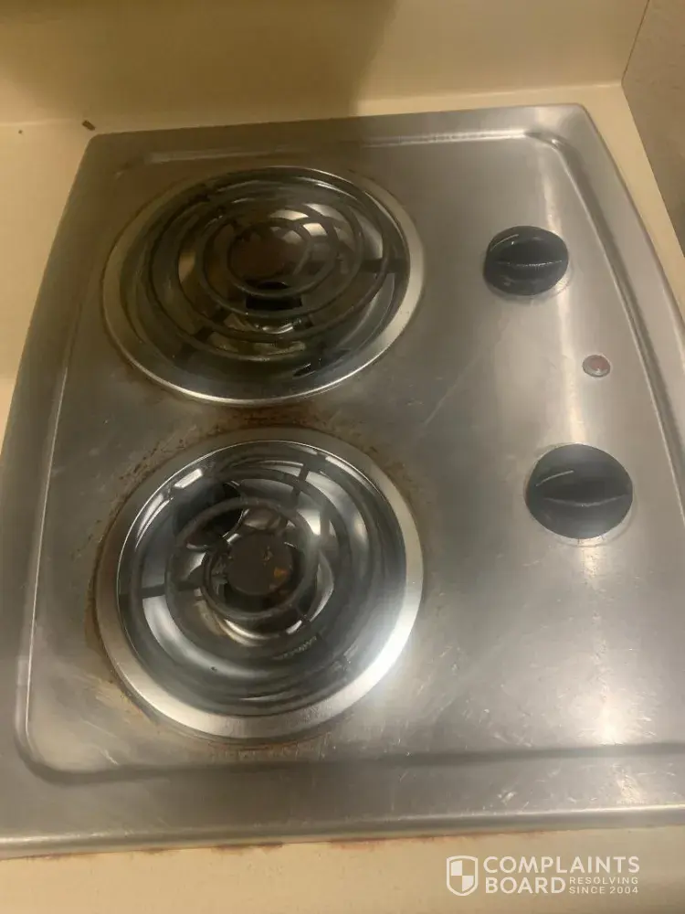 Checked room out and found stove top was rusty and had burned food particles around burners. Reported this to management but since I was not going to cook in the room I took the room. Stayed one night killed three bugs, pillows were little more than half filled sacks with some kind of stuffing. Would not even call them pillows. Checked out a day early because wasn't going to stay in bug infested room for one more night. Knew I would be charged for two night stay but was willing to accept it. Paid cash for room and left. Now I find that I am being charged on my credit card an amount that is equal to half of what I was charged to reserve the room. Room reservation charge still not refunded on my credit card three days after I checked out. Called credit card company to dispute the extra charge. Not going to pay to clean a room that was dirty when I checked in. When I did check in desk clerk made a copy of both sides of my credit card. Felt this was unnecessary since the information was used when I made the reservation. Now I see they need the information to make fraudulent charges on it. WoodSprings advertises the cleanliness of their rooms. They didn't mean this one. The attached pictures were taken when I checked out the room and reported it to the desk clerk,