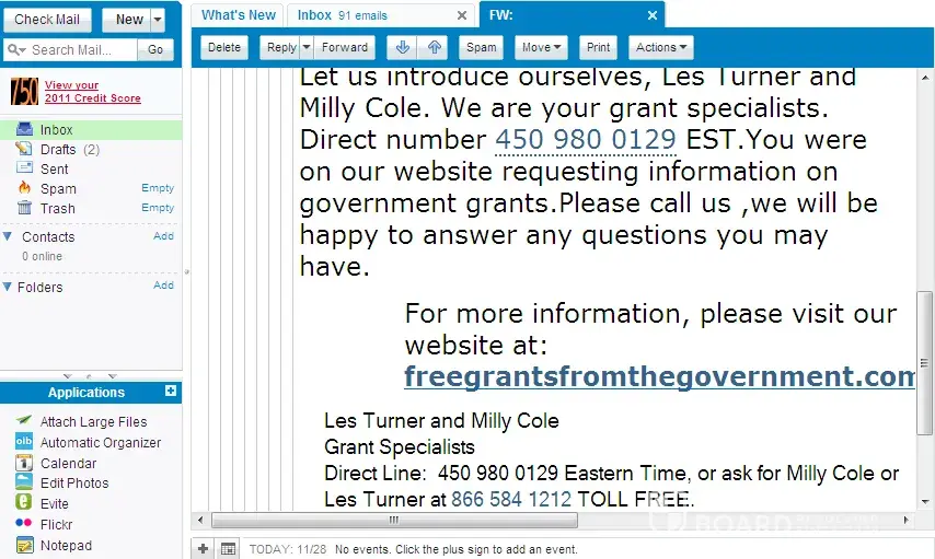 I just opened a small salon and I need a little startup cash to help grow my business. I got a call from Les Turner and Milly Cole after filling out the information online at www.freegrantsfromthegovernment.com Phone number [protected].