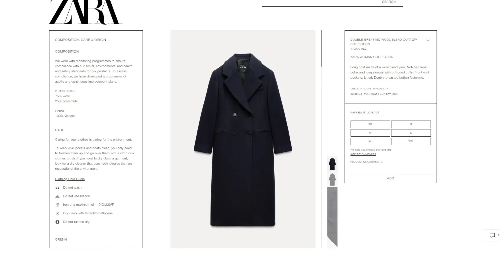 Not near a Zara store & order numerous items online. Some of your clothes are not true to their size. It is very frustrating & disappointing!