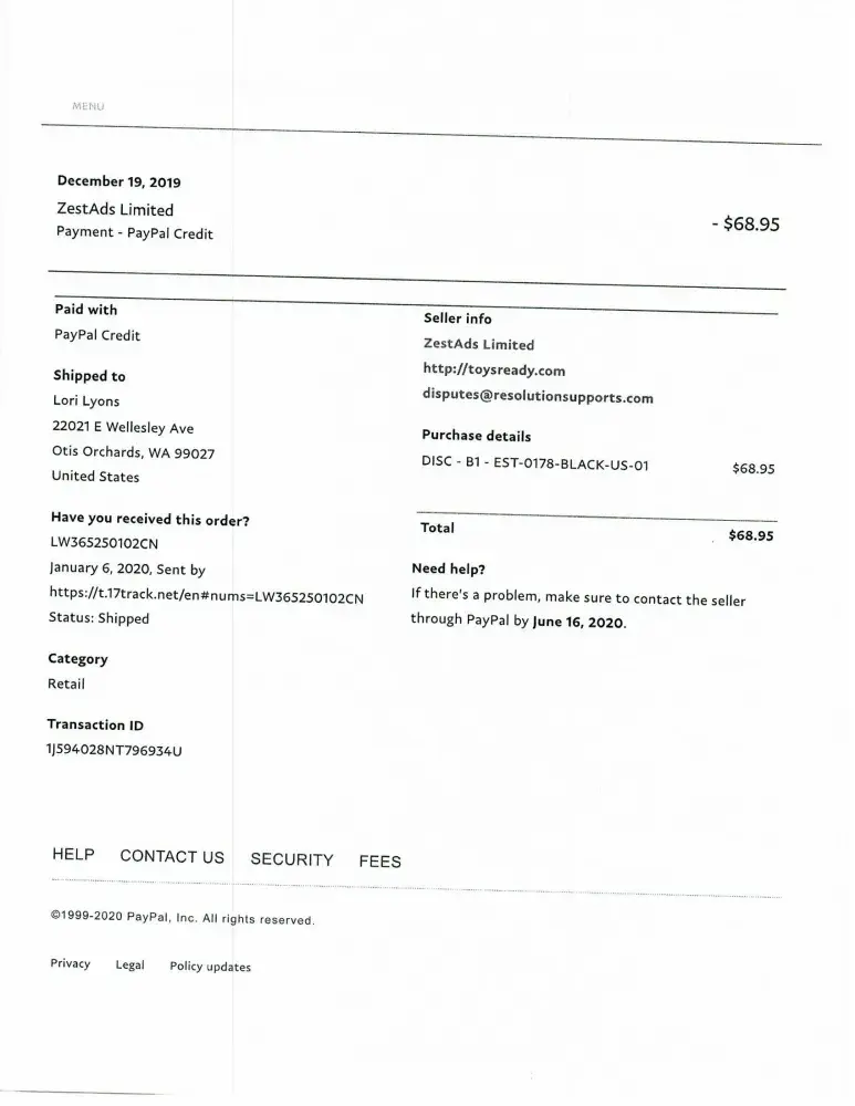 I ordered this product and paid for it on 12/3/19 with my bank account. It was for a flash light stating you buy one and get 2 free and never received anything. I am requesting a full refund of this product that I never received. Evidently there have been many complaints filed on Zestads as per internet information. I bought it on good faith and paid for it so i expect a full refund.
