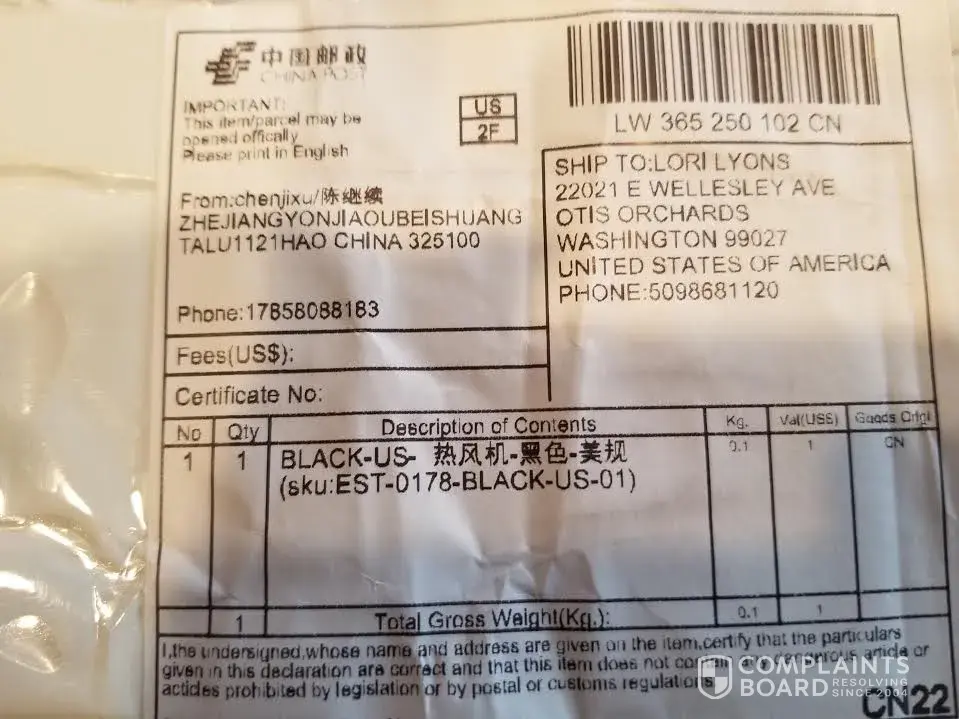 Ordered a 'ceramic heater' back in December... B1 - EST-0178-BLACK-US-01 $75.00 tried to track with addressed provided by ZestAds...took me to nowhere land ... tried to email company with address provided...email returned as 'undeliverable'...