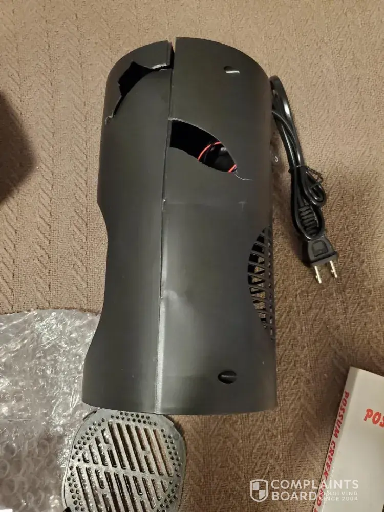 I purchased two space heaters from this company leading me to believe they are nice enough to heat an entire house. I paid 95.00 for two heaters. After nearly 3 months, I finally get the space heaters. They are nothing as advertised. They are lucky to heat a 12 in area. Only an on off switch no temp settings. I plugged one in and in 10 minutes the fan quit. Had i not been right there it would have caught fire as the heating element continued to heat. I paid through PayPal. The product came with no invoice and no way to contact them so i contacted Paypal since i paid through them. They got the address and in order for me to get a refund i have to send the items back to Hong Kong which is going to cost me as much as the heaters did. Paypal is just as guilty as this company.