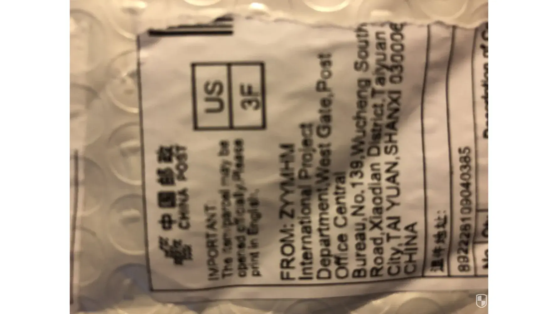 The parcel came from ZYYMHM